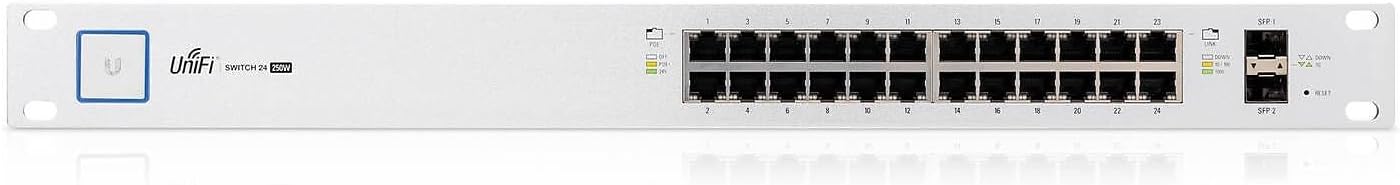 Commutateur UBIQUITI UniFi Switch US-24-250W – 24 ports Gigabit Ethernet PoE+ et 2 ports SFP – Montable sur rack